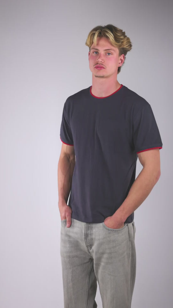 Dit ultrazachte en lichtgewicht bamboe T-shirt voor heren voelt bijna gewichtloos aan, maar oogt verzorgd en stijlvol. Met een klassieke snit en modern comfort is dit T-shirt ontworpen voor dagelijks gebruik, met een labelvrije kraag (dus geen jeukende labels) en verfijnde mouwzomen voor een subtiele afwerking.